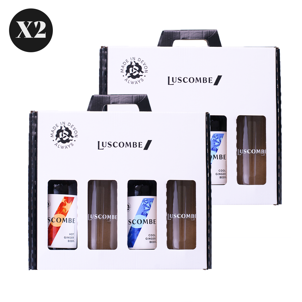 Two beautifully presented gift packs each featuring 1x Hot Ginger Beer, 1x Cool Ginger Beer and 2x premium Luscombe glasses. The perfect gifts for any ginger beer lover.